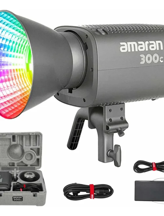 Alquila la Aputure Amaran 300C RGBWW en Bogotá. Luz LED COB de 300W con control total de color, ideal para cine, fotografía y streaming profesional.